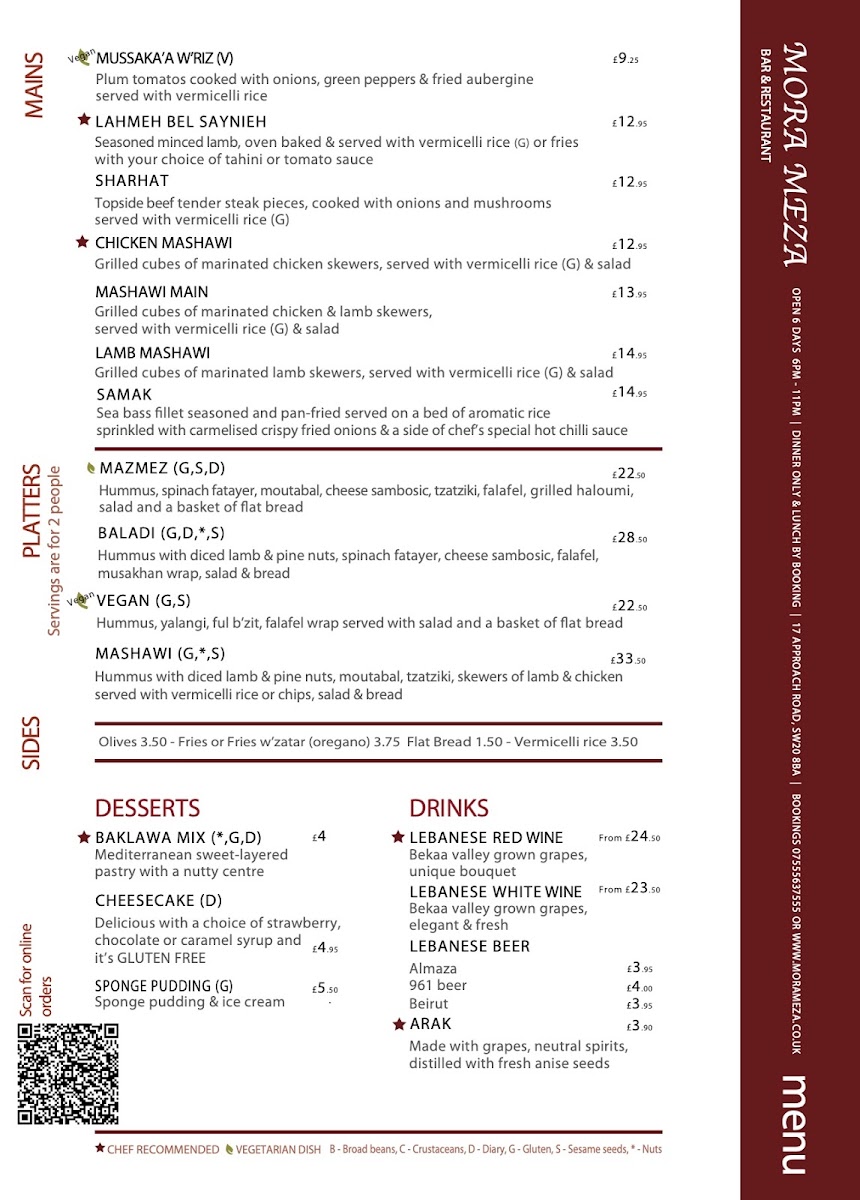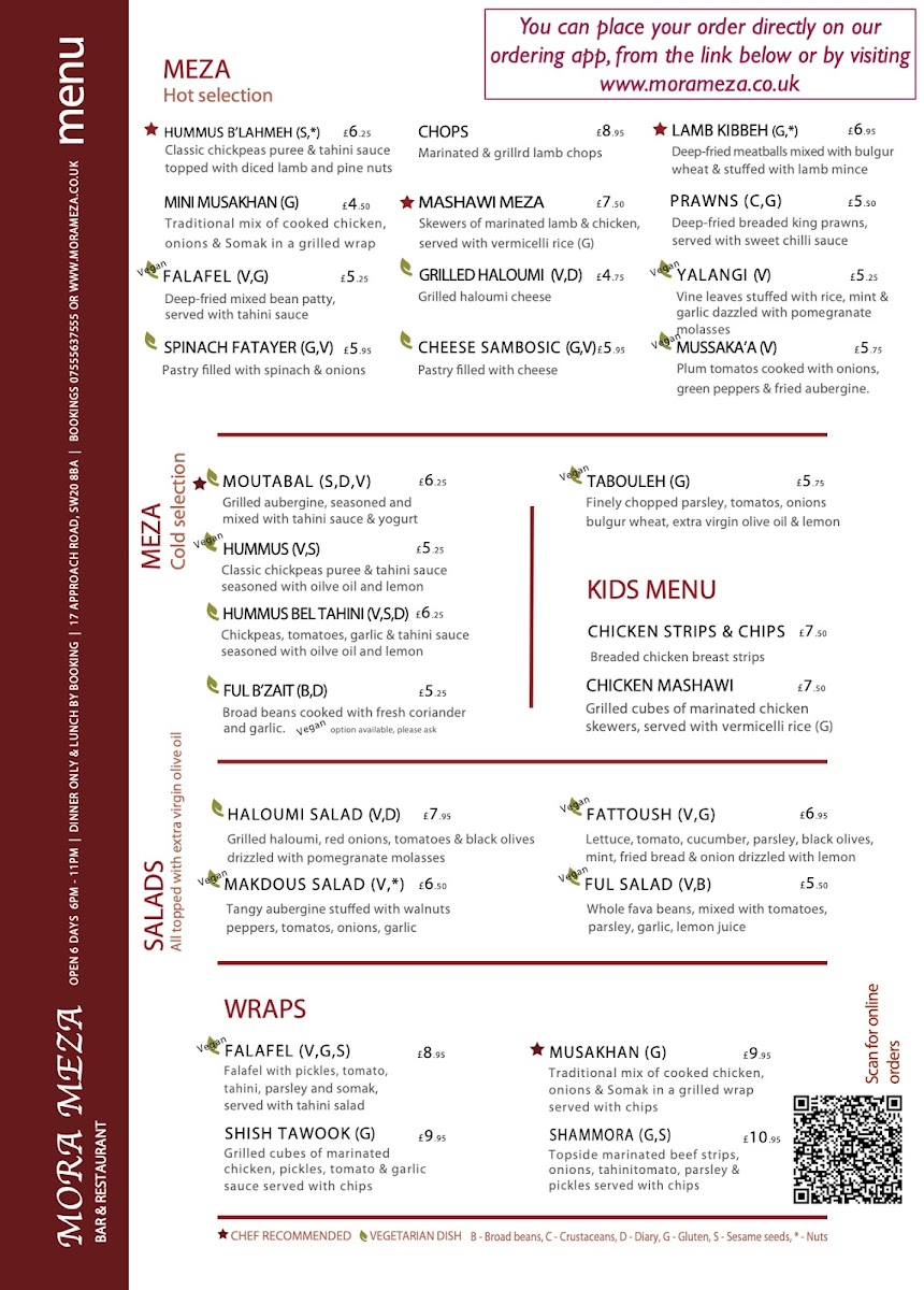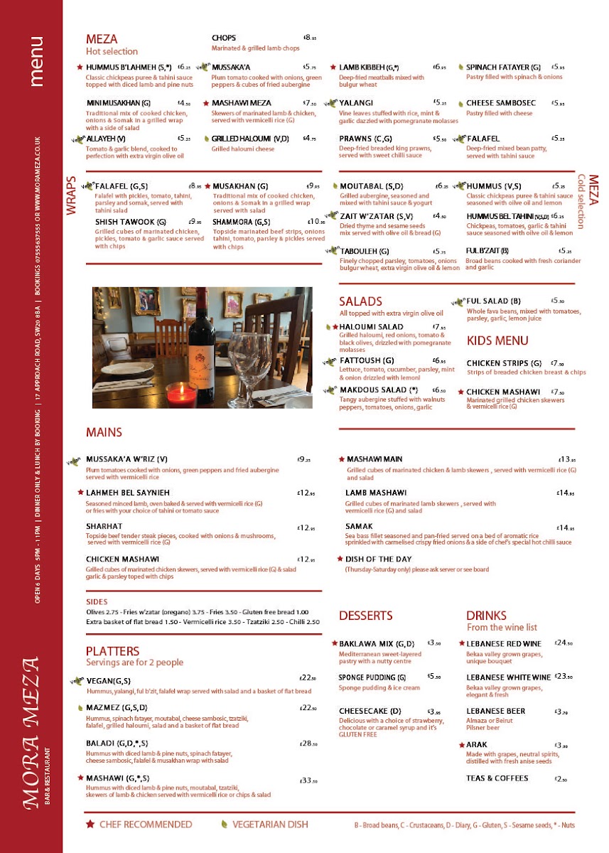 The Mora Meza Bar & Restaurant Menu is a vibrant celebration of Mediterranean and Latin American cuisines, with each dish thoughtfully crafted using fresh, locally-sourced ingredients. Highlights include the succulent grilled meats, flavorful seafood dishes, and the rich array of vegetarian options. Whether you’re in the mood for something light like their exquisite tapas selection or craving a heartier meal, the menu caters to diverse tastes, making it suitable for both intimate dinners and group gatherings.